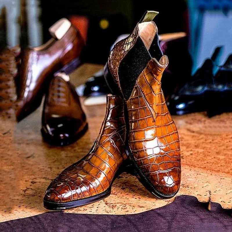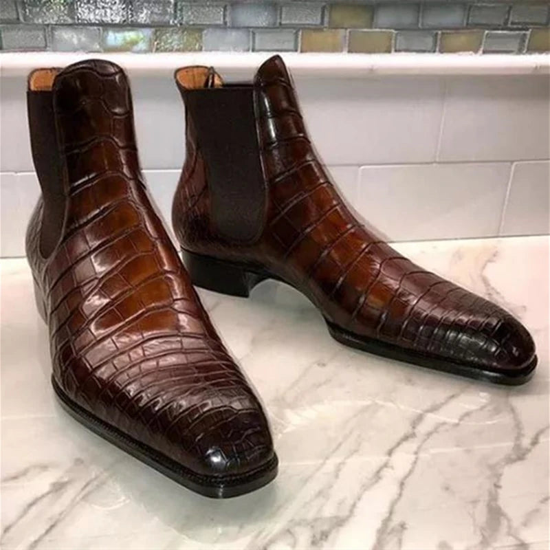 The Croci - Unique Crocodile pattern leather CHELSEA boots for men